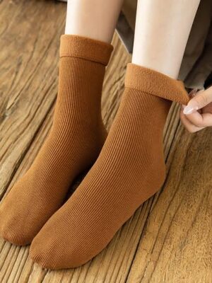1 Pair Mustard Color New Fashion Winter Warm Warm Coral Thermal Fleece Fluffy Socks Premium Quality